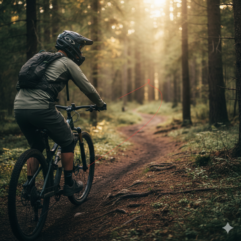 Du lernst, wie Du durch minimale Hüftbewegungen und den richtigen Zug am Lenker die optimale Gewichtsverteilung justierst, um jede Wurzel hochzufahren.